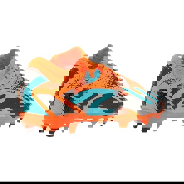 Finished in orange with contrast colour detailing and logo accents, these boots feature a round toe and a flat profile. Underfoot, an EVA (Ethyl Vinyl Acetate) midsole sits above a rubber lug sole outsole, supporting traction-focused performance on firm ground surfaces.