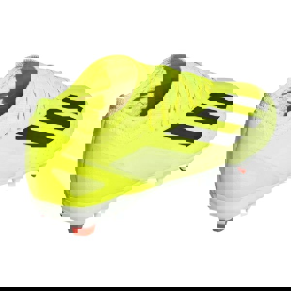 The cleated outsole suits use on grass and firm ground surfaces. Contrast stripes and a logo complete the look, while recycled materials form part of the construction.