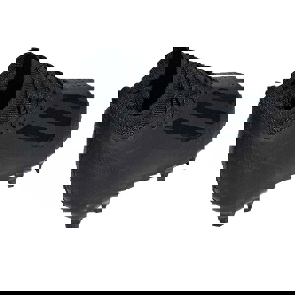 These adidas children’s X Crazyfast.3 firm ground football boots come in Core Black with a low cut and a round toe. The upper is made from coated textile with a textile lining, finished with a knitted collar and a lightweight feel. A lace-up fastening runs through 8 eyelets for a secure closure.