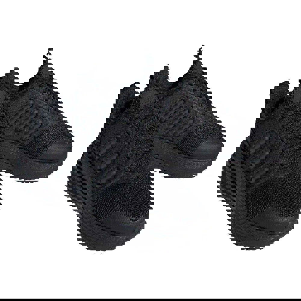 Underfoot, the midsole combines BOOST and Bounce, while a rubber outsole provides a durable base. The shape is finished with a round toe and a flat sole. Made from recycled materials.