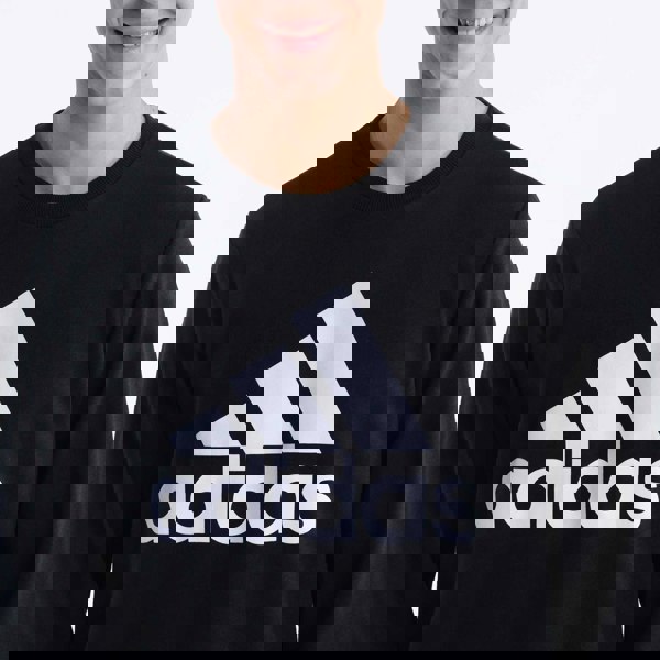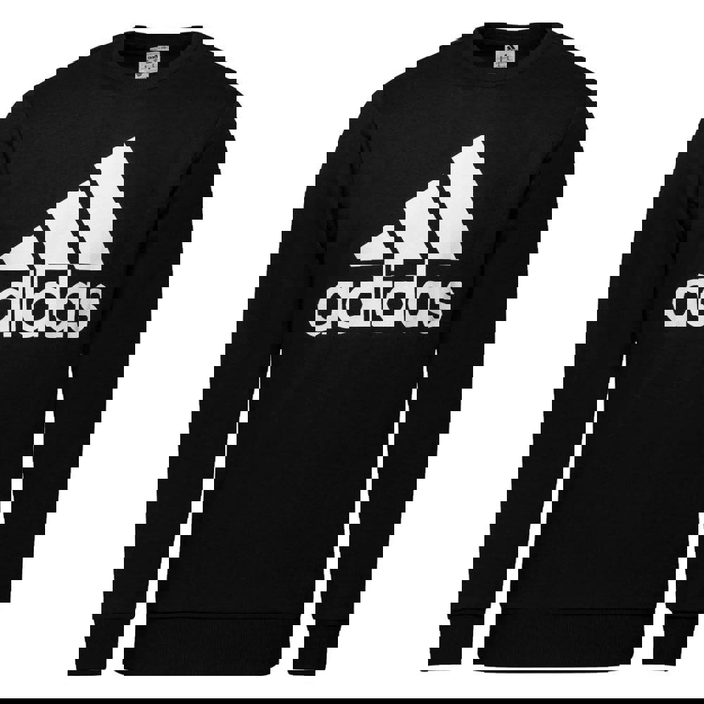 The Adidas Crew Neck Jumper for men is available in the colour black, featuring the iconic Adidas Ess logo on the chest.