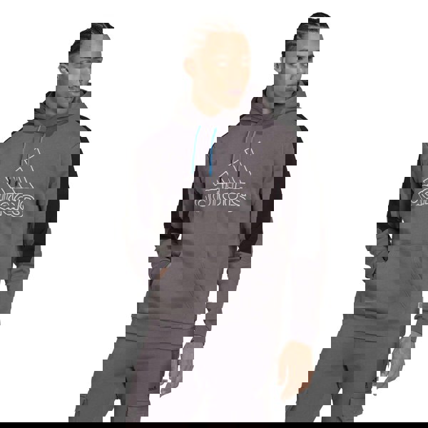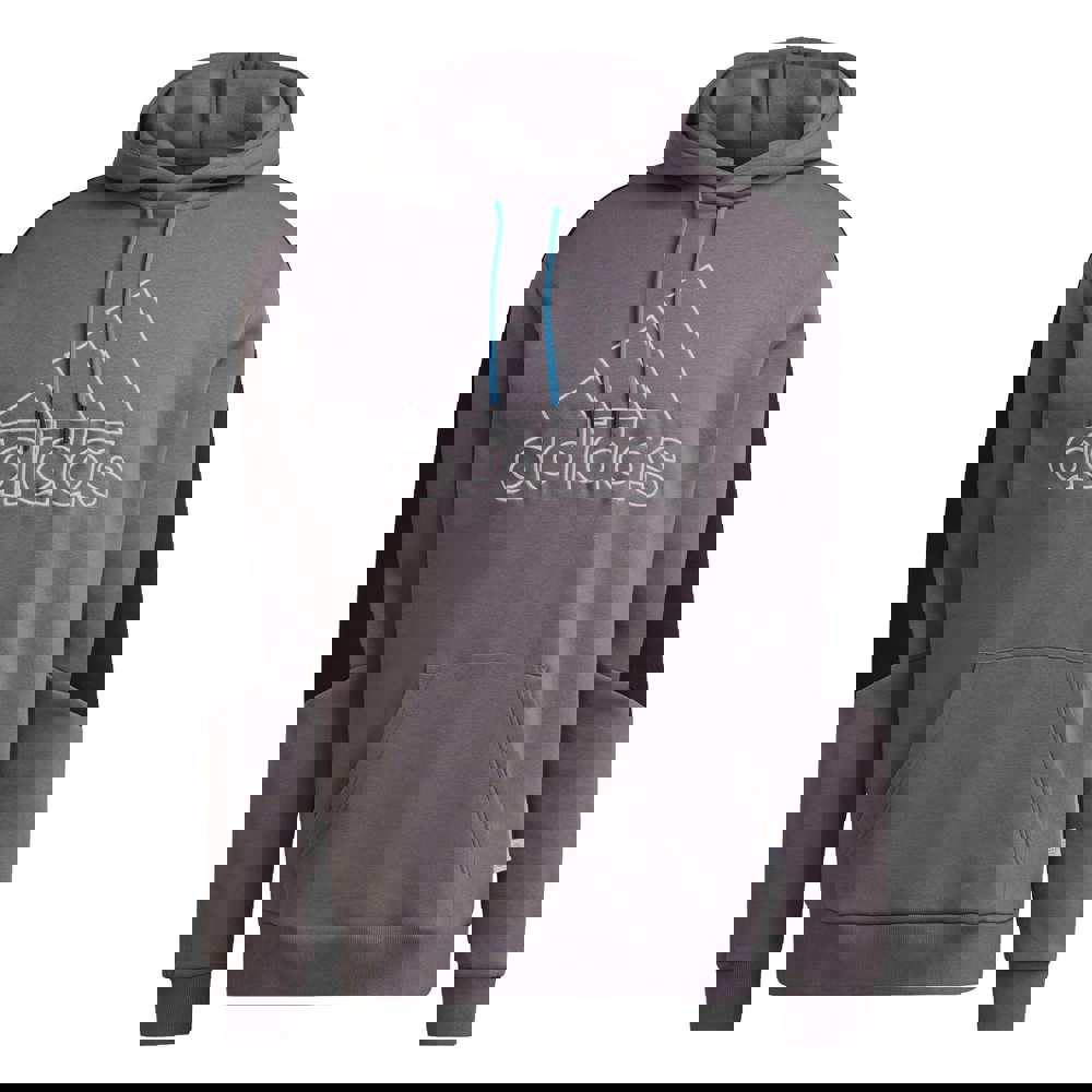 This hoodie boasts a stylish grey color and features a convenient drawstring hood, plush fleece material, sleek black arm panels, and ribbed cuffs and hem. The embroidered Adidas logo adds a touch of branding. Plus, it is machine washable for easy care.
