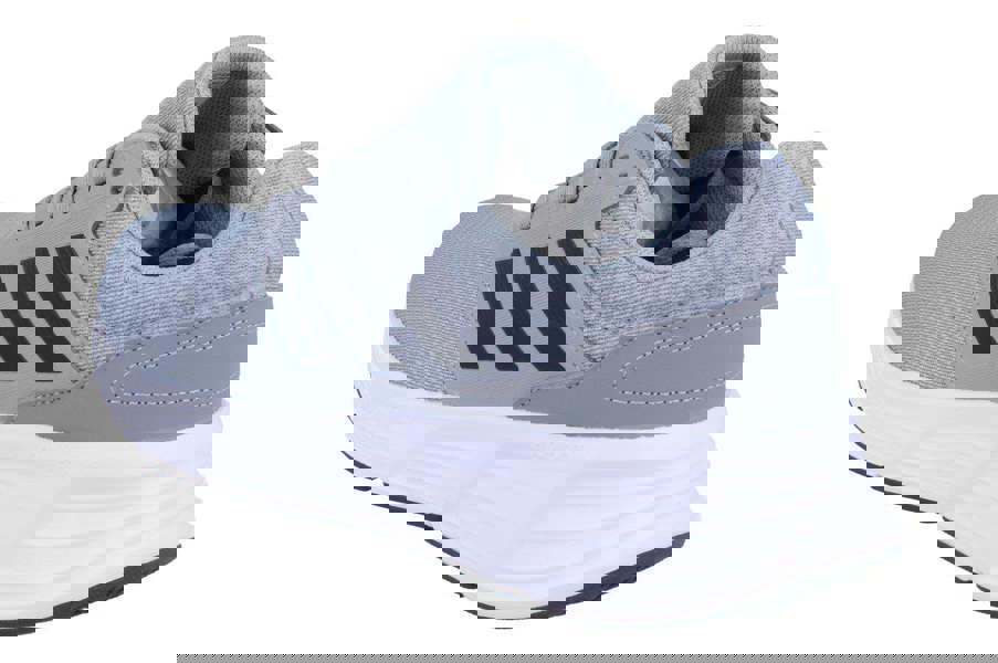 The upper is finished in a textured grey with black adidas-style side detailing, while the white sole creates a crisp contrast. A lace-up front helps you adjust the fit to your preference, and the low-profile shape keeps the overall look modern and versatile.