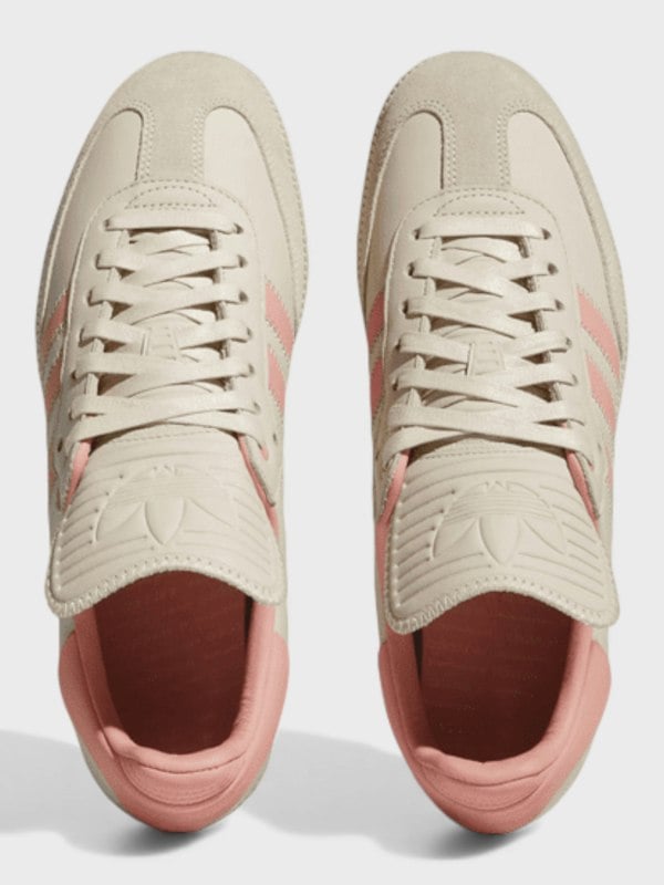 This collaborative silhouette reimagines the iconic Samba with elevated aesthetics, featuring a sophisticated mauve colorway that transitions seamlessly between neutral and statement-making appeal.