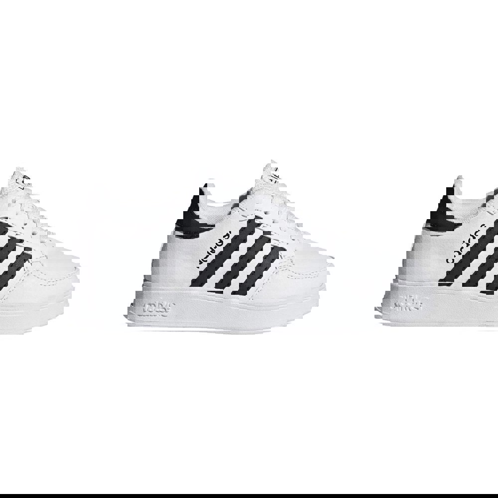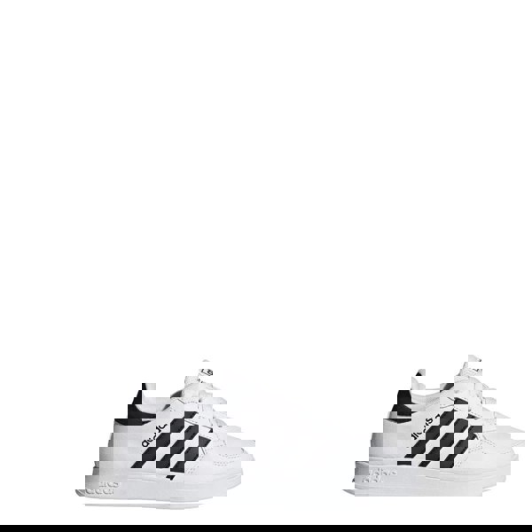 These adidas Kids Breaknet 2.0 trainers come in white and black with a low-cut profile and a round toe. The upper is made from synthetic leather, paired with a textile lining and an EVA insole. A cushioned synthetic midsole sits above a rubber outsole for a structured finish.