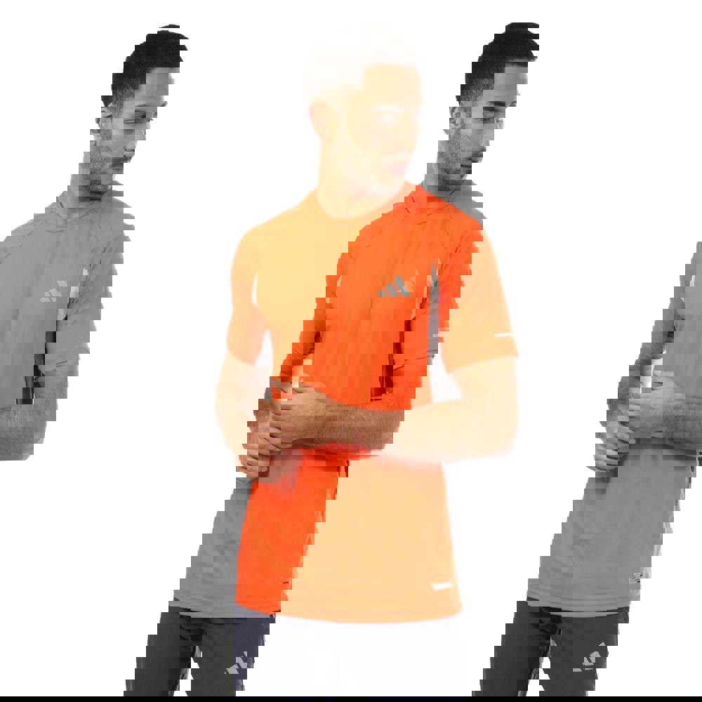 Finished in orange with a logo design, it includes contrast panelling and reflective detailing. Climacool fabric technology and an unrestricted movement construction complete the performance-led specification.