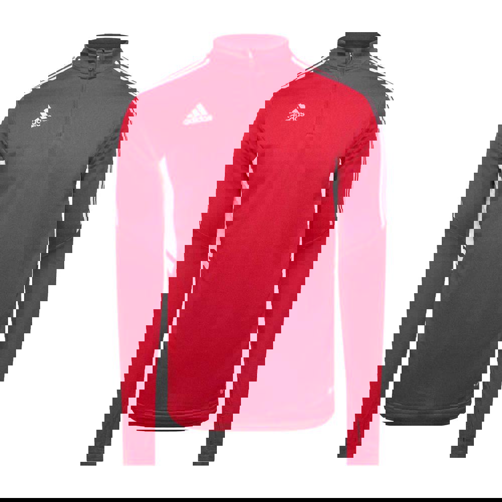 This adidas Condivo 22 training top is made from 100% recycled polyester and finished in red with logo and stripe detail. It has a half zip and pull-over construction, with a standing collar and long sleeves. Thumb holes sit at the cuffs, and Aeroready fabric technology is specified. The fit is slim.