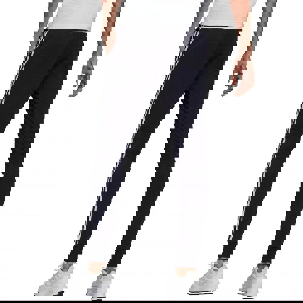 These adidas men’s Essentials fleece jogging bottoms are made from a cotton-rich blend with recycled polyester and viscose. Finished in navy with white contrast 3 stripes and a logo detail, they offer a clean, sporty look for casual wear.