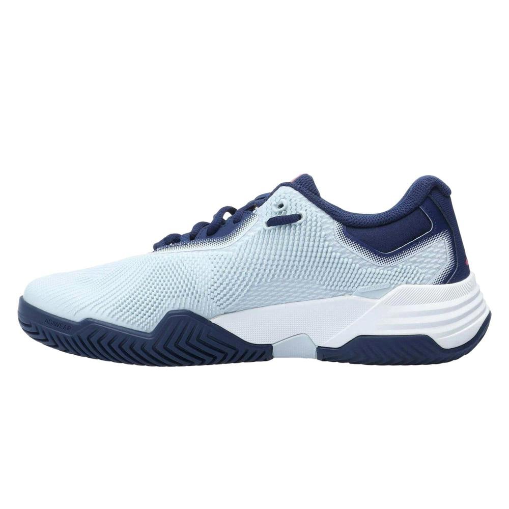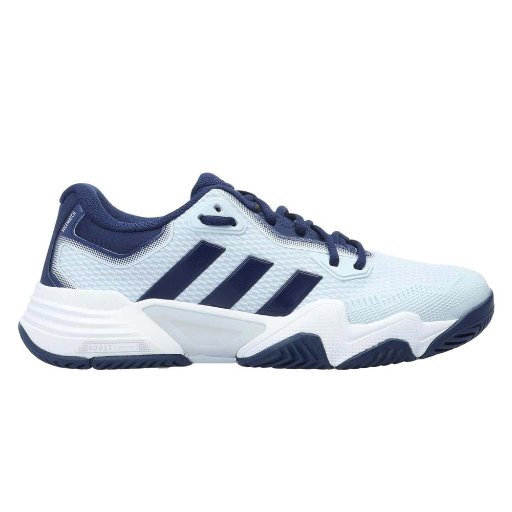 These adidas Solematch Control 2 tennis shoes are built with a mesh upper and a textile lining. A BOOST midsole sits underfoot, paired with a rubber outsole. The low-cut profile and low heel create a streamlined shape, finished with a round toe.
