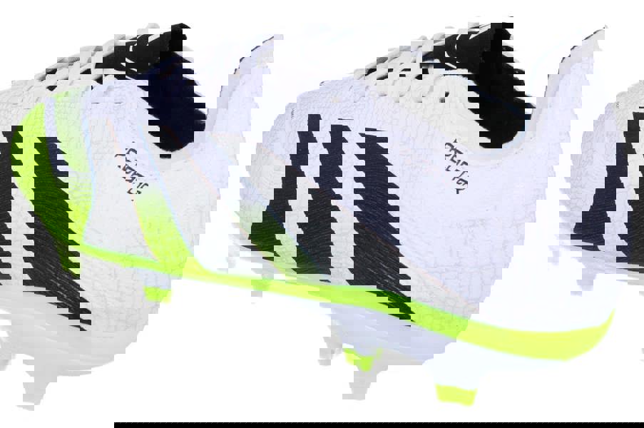 The adidas Predator League FG/MG men’s football boots are designed for match play across firm ground and multi-ground surfaces. Finished in a crisp white base with bold black detailing and vivid green accents, they bring a modern, high-contrast look to your kit.