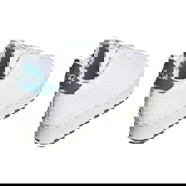 These adidas unisex adult Advantage trainers come in white with a low-cut profile and a round toe. The upper is made from durable synthetic material, finished with contrast detailing, logo branding and perforated design elements. A lace-up fastening and 14 eyelets complete the clean, structured look.