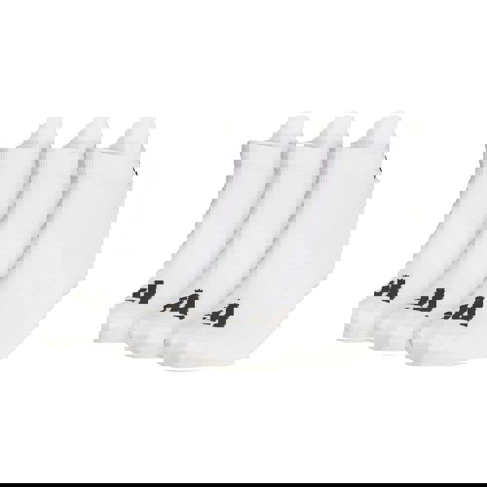 This pack of three unisex adult ankle socks from adidas comes in white with a logo design. Made from a cotton-rich blend with recycled polyester and elastane, they have a soft-touch feel and a lightweight 111gsm construction.