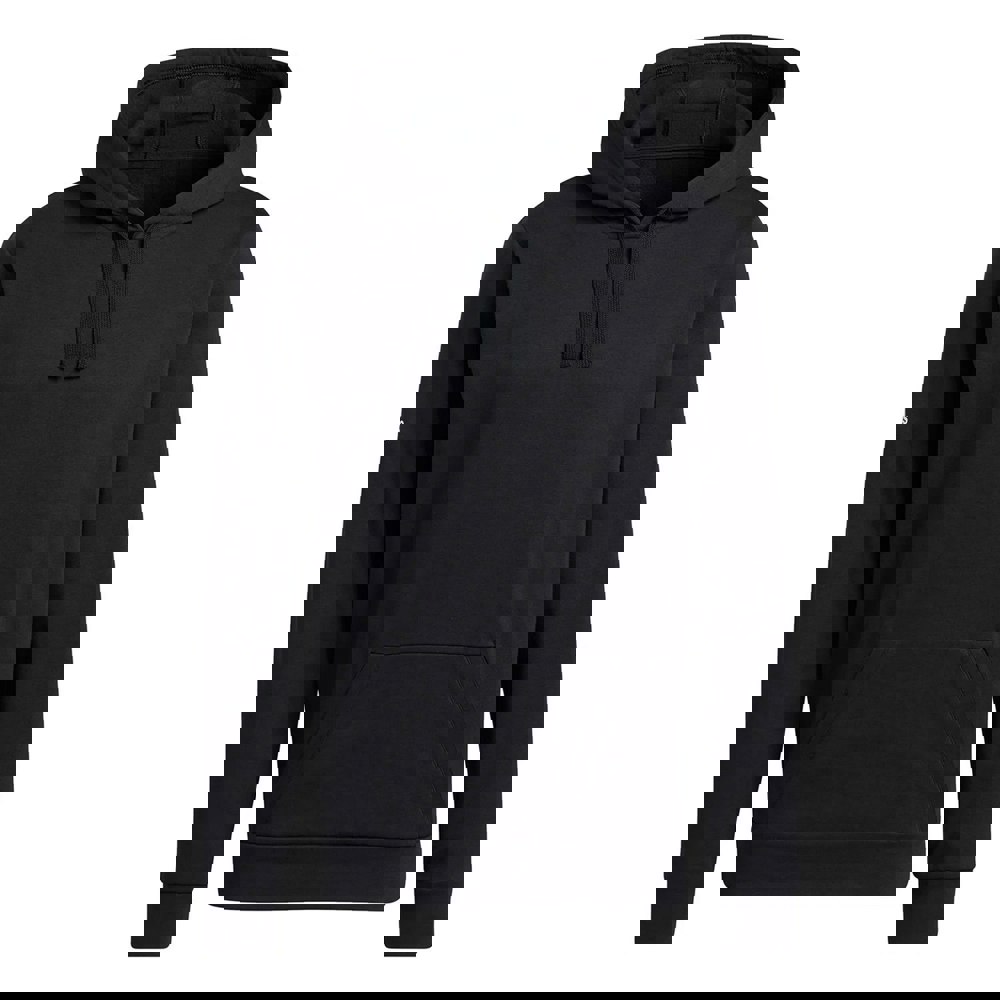 This unisex adidas fleece hoodie is made from a cotton-rich blend with recycled polyester for a soft, casual layer. The plain black finish is complemented by a sleeve print, keeping the look clean while adding a subtle graphic detail.