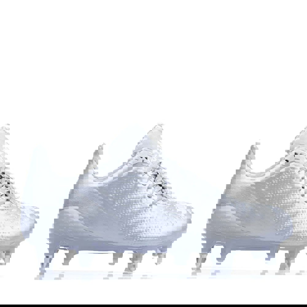 The adidas Unisex Adult Predator Malice 3D Rugby Boots in Antique Silver are designed with a low cut and an asymmetrical lacing system for a secure, streamlined fit. A knitted upper is paired with faux suede panels and a leather overlay, creating a distinctive layered look that suits both training and matchday wear.