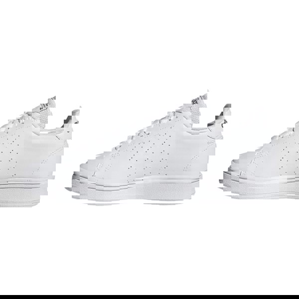 These adidas Advantage Base trainers bring a clean, plain design to a low-cut profile. Built with a synthetic leather upper, they fasten with lace-up styling through seven eyelets and finish with a round toe. A platform sole adds height, while perforation detailing keeps the look streamlined.