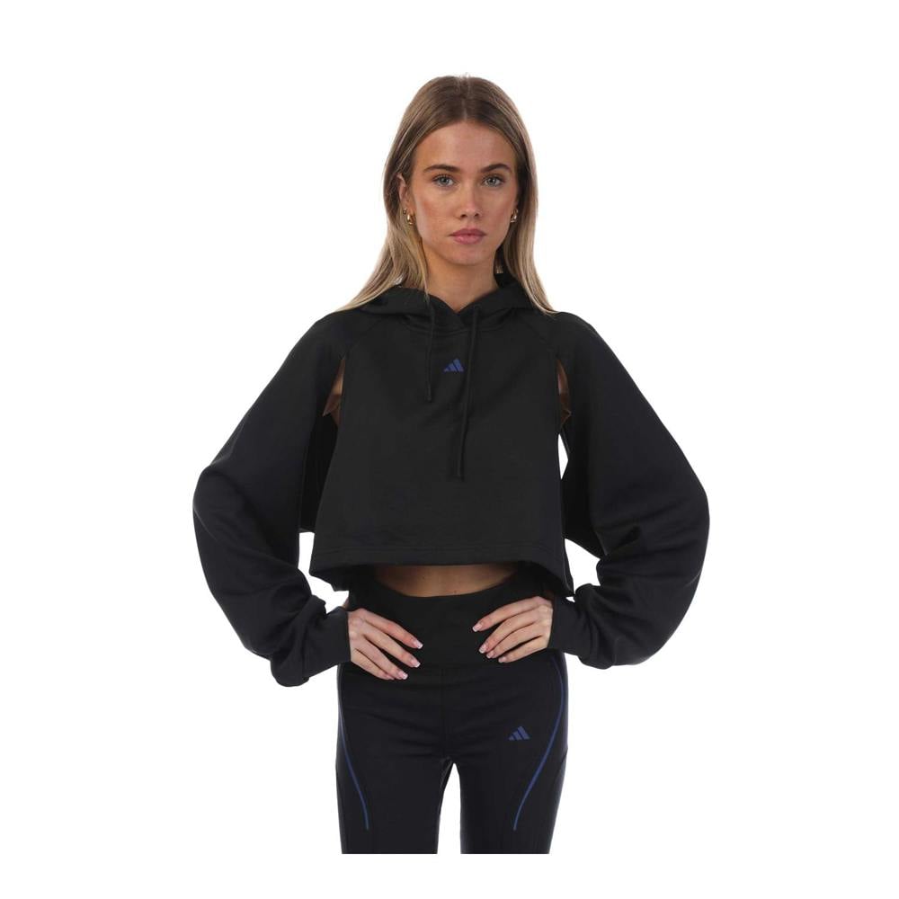 This women’s HIIT crop hoodie from adidas is made from 100% polyester and comes in black with a plain finish and logo detail. The hooded neckline is paired with an adjustable, sew-on hood with a drawcord, while the pull over design keeps the look clean and simple.