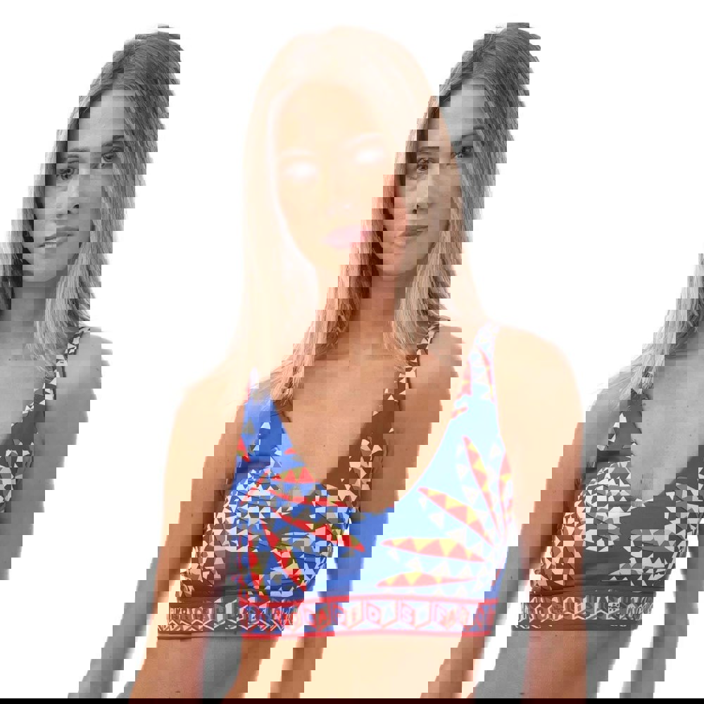 Practical details include an adjustable back strap and an elasticated band for a secure fit. A mesh panel adds a lightweight construction detail, and the removable padded cups allow the level of shaping to be adjusted.