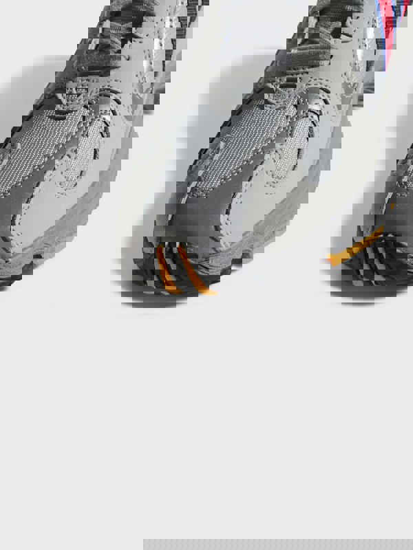 This distinctive sneaker features a multi-layered construction that balances bold aesthetics with wearable comfort.