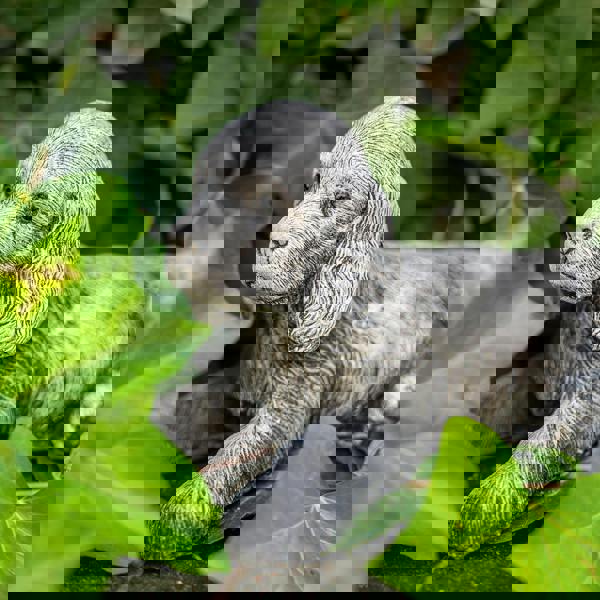 The most fantastic model of a lying stone spaniel puppy with lovely big eyes. Breathtakingly realistic addition for any décor, house ornament, garden ornament or headstone for beloved animal memorial. Stone cast and absolutely solid to last a lifetime.