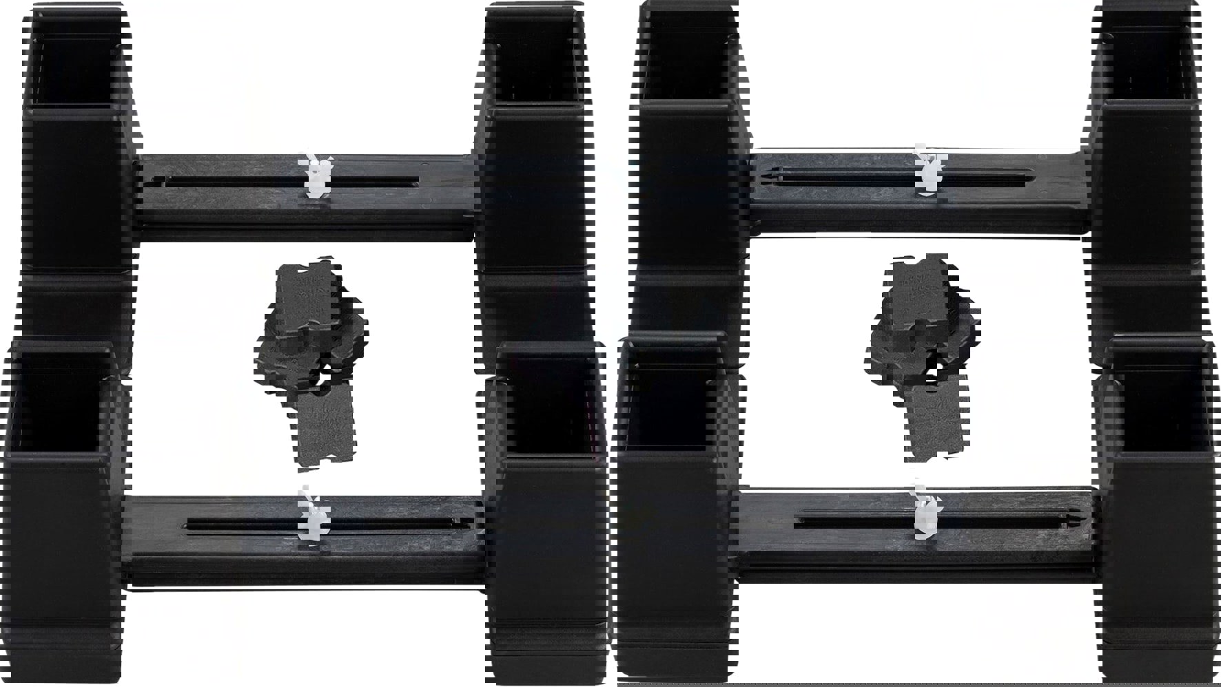 A Linked Bed Raiser with adjustable height and width, designed to raise beds that have legs rather than castors.