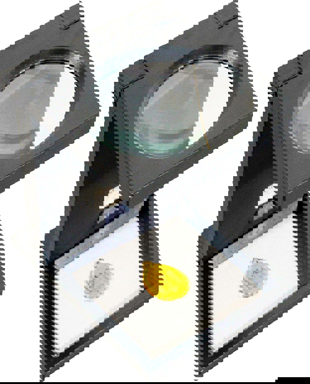A hands free 110mm lens with 2. 5 x magnification, this magnifier is based on the original linen tester style magnifier. Fitted with 2 x LED lights to offer brightness when in use. This magnifier requires 3 x AAA batteries (not supplied) and is easily workable with an on/off switch. The edges are fitted with ruling edges of up to 10cm or 4 inches, which can be useful for working on a range of projects. The free standing design makes it a sturdy option when mounted on a steady surface such as a table top. Another helpful feature of this magnifier is that it is foldable to pocket size.