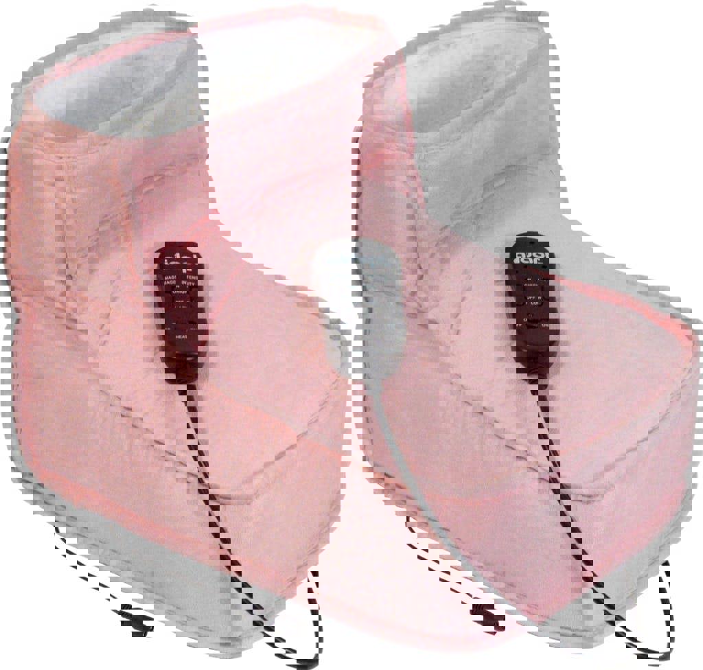 The fleece-lined massage boot with heat features two powerful motors, separate heat control and two massage levels. The Massage Foot Warmer has a soft, removable fleece lining that is machine washable and is treated to prevent lingering foot odour. The exterior material is a soft-touch micro-suede and the boot will fit up to a man s size 15 foot. The handheld controller adjusts both heat and massage; soothing cold, tired or aching feet.