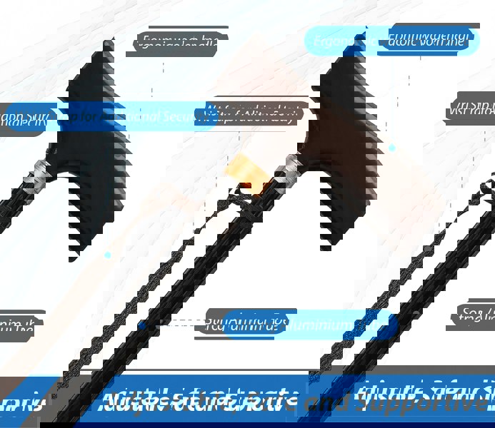 It features a wooden handle with strap and is height adjustable for better fit and comfort.
