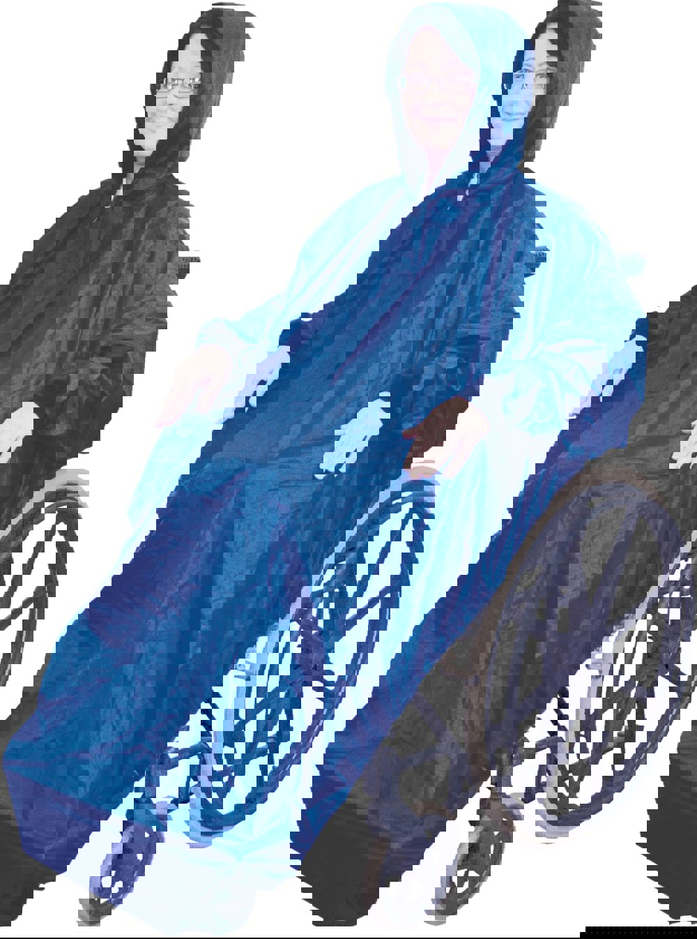 The Wheelchair Mac with Sleeves is the ideal garment to provide head to toe protection for you and your wheelchair, with soft elasticated cuffs on the sleeves to ensure that there is no chaffing on the skin, a neckline zip so the Wheelchair Mac can be put on or taken off with ease, plus an elasticated skirt for a snug fit and drawstring hood with spring clip fastening.