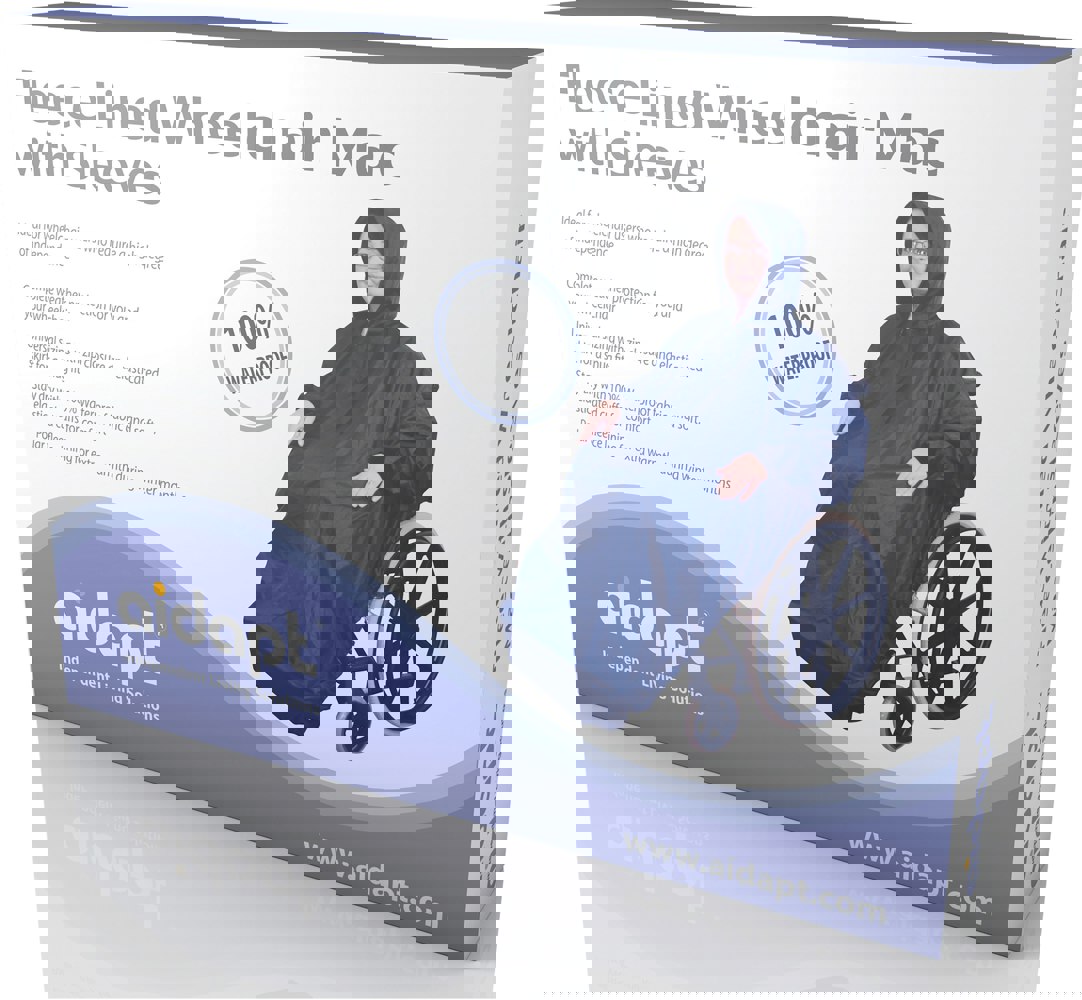 The perfect Wheelchair accessory garment for wheelchair users who require a high degree of independence and self-propel their wheelchair; the Wheelchair Mac with Sleeves is made from 100pc waterproof fabric with a synthetic fleece lining for extra warmth and provides complete protection from the elements.