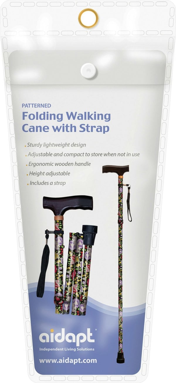 Aidapt Folding Walking Stick With Strap Black Floral