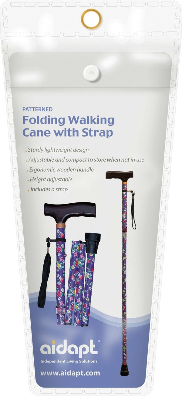 The Folding Walking Cane is a stylish and ergonomic walking cane with a sturdy yet lightweight powder coated aluminium tube body and rubber tip ferrules.