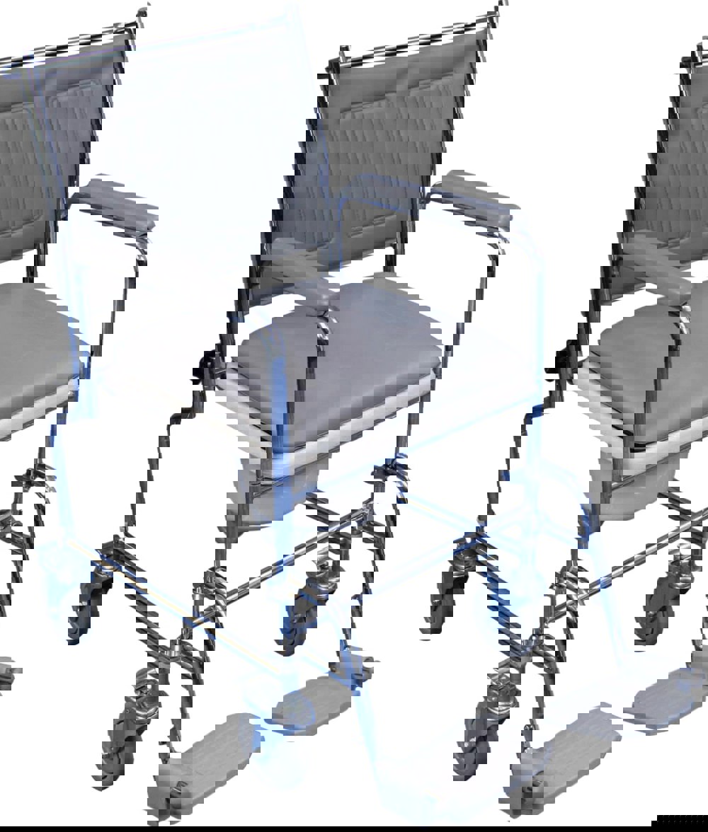 This versatile mobile commode also features detachable arms, pram handle and four braked castors as standard.
