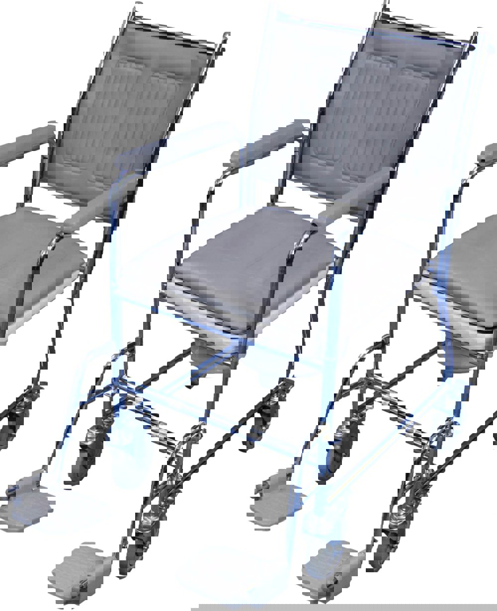 Now available in a long lasting chrome-plated finish as standard, the Linton Mobile Commode also features a padded cushion overseat and back, which are vinyl welded to reduce bacterial build up.