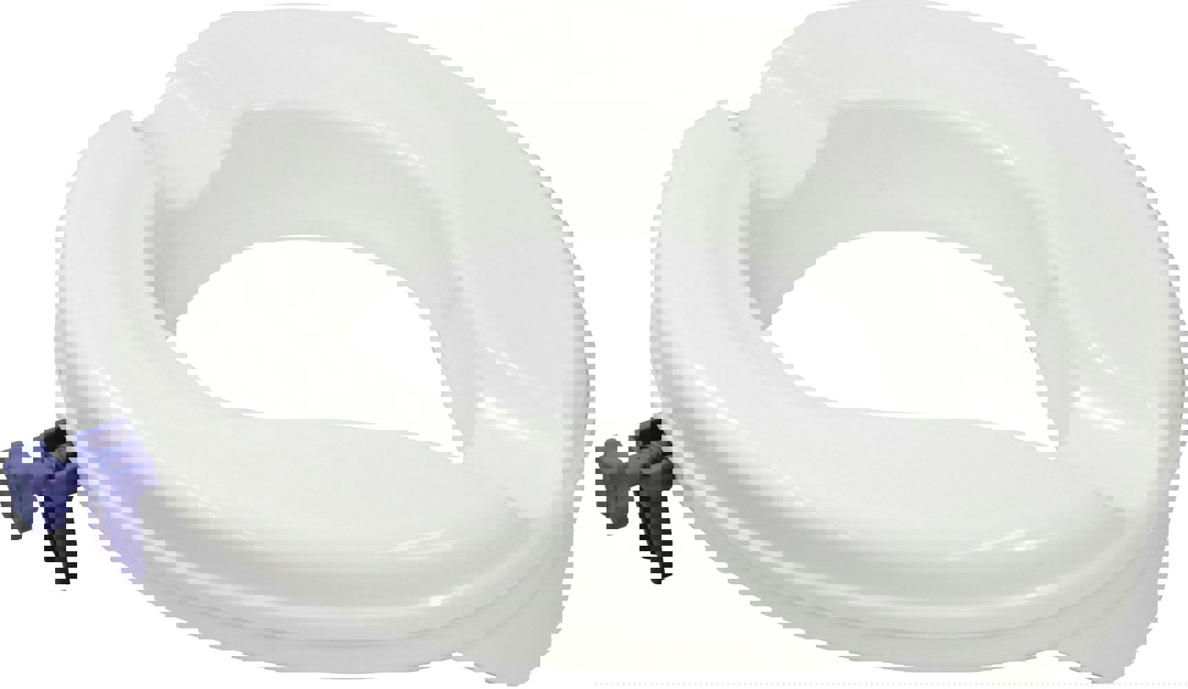 The side-mounted brackets of the raised toilet seat have rubber over-moulds and the front skirt has a rubberised pad for maximum grip and stability.
