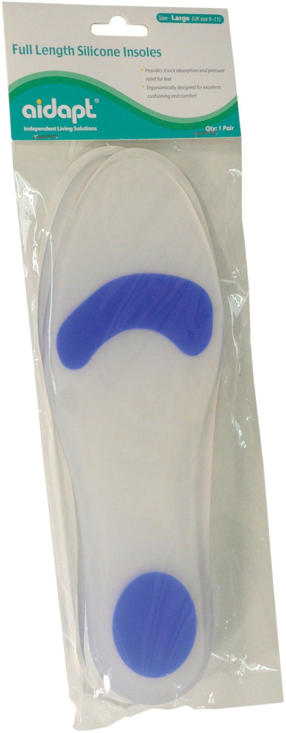 Supportive and durable Full Length Insoles, constructed from medical grade silicone rubber that provides excellent shock absorption and helps to relieve pressure on the feet.