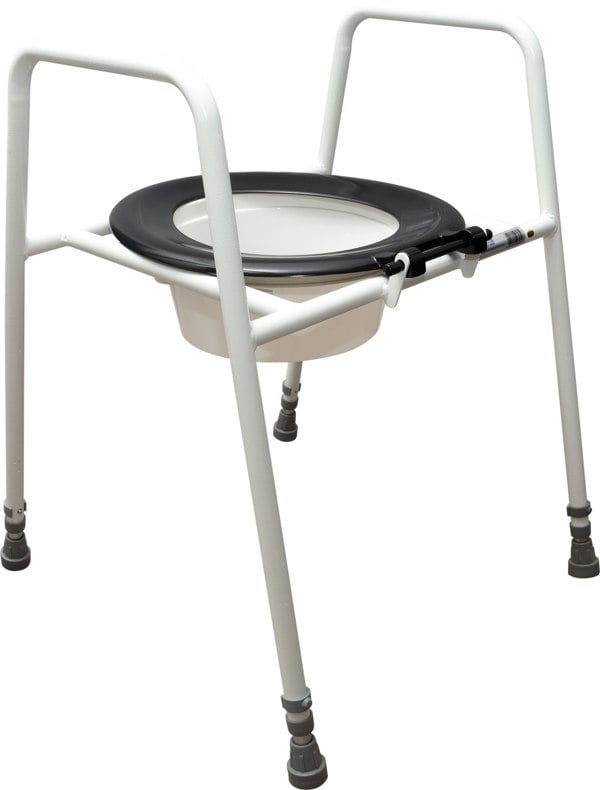 Available as a portable, free standing raised toilet frame, it can optionally be supplied ready for fixing to the floor for a more permanent, secure installation.