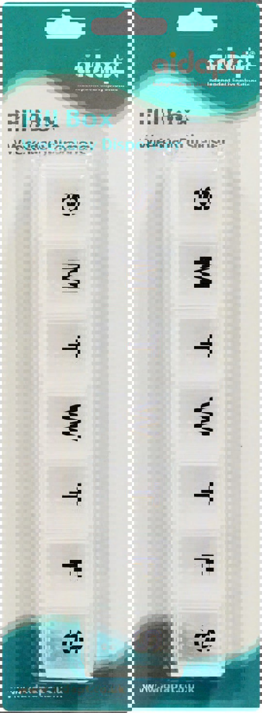 The affordable Weekly Pill Dispenser provides a simple reminder to take your medication, with one clearly-labelled compartment per day, also featuring braille for identification for each day s compartment.
