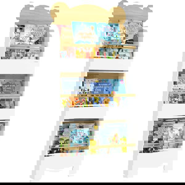 Discover the charm of the AIYAPLAY Kids Bookcase, a delightful bear-shaped bookshelf that makes reading irresistible for little ones. Cleverly designed to fit snugly into narrow spaces, this three-tier white bookshelf makes all their favourite stories are easily accessible, promoting excellent storage habits while keeping their room tidy and secure with its anti-tipping features.