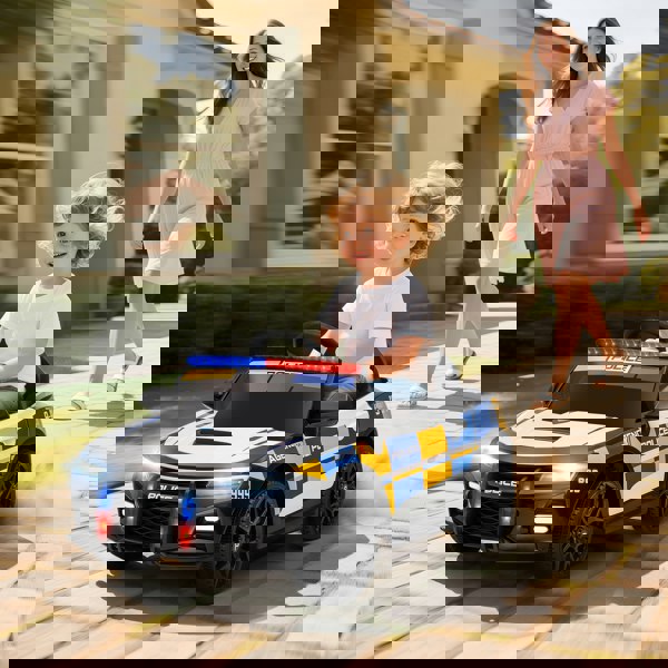 This electric police car features secure seat belts, shock absorbers and smooth acceleration, offering a safe and thrilling outdoor adventure.