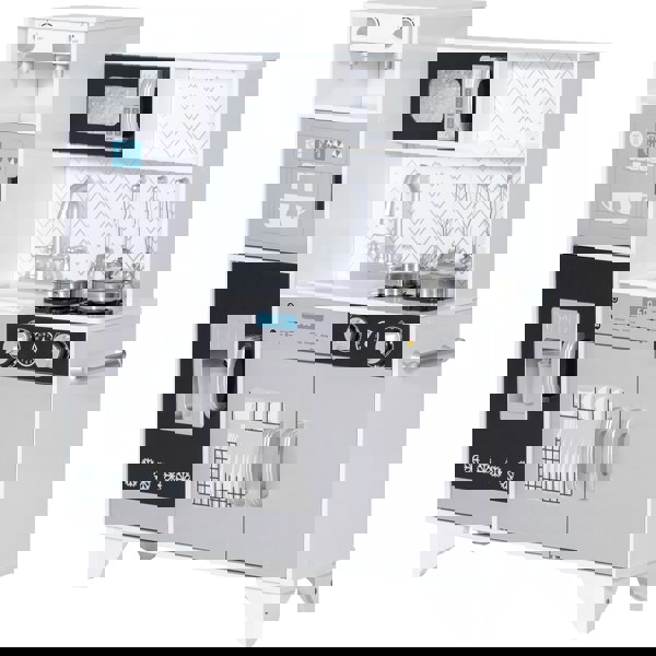 Their very own kitchen to get creative, this AIYAPLAY kids kitchen playset includes a pretend ice maker, coffee machine and stove top with realistic sounds – a charming setup that lets imaginations soar. Includes stainless steel accessories and play mugs, children can roleplay serving their favourite meals. The spacious storage provides a tidy play area, keeping accessories organised. A wonderful blend of fun and learning, it offers endless enjoyment while teaching kitchen etiquette.