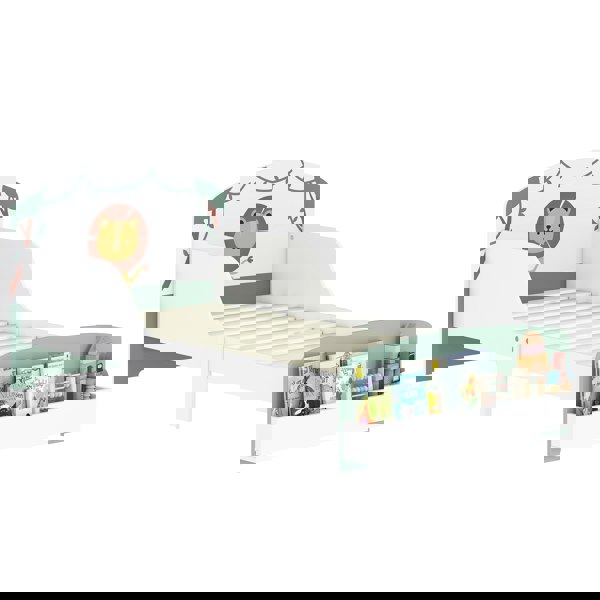 Finished with a cheerful lion-themed frame, this kids bed also includes built-in storage at the footboard to keep toys and books neatly organised. It features a stable P2 grade thick board structure and supports up to 40kg. Suitable for ages 3-8 years.