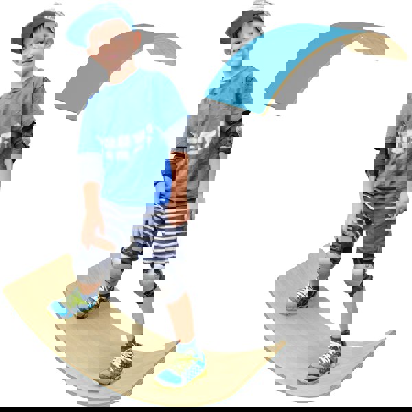 The AIYAPLAY kids balance board is a simple and effective solution to turn boredom into fun and joy. Suitable for ages 3-8 years, children can creatively use it as a bridge, slide, seesaw or rocking chair. The blue felt base reduces noise and provides a non-slip surface for added safety. Made from solid natural wood, it's not just a toy but also helps in developing balance and coordination, encouraging active play and joyful moments at home.