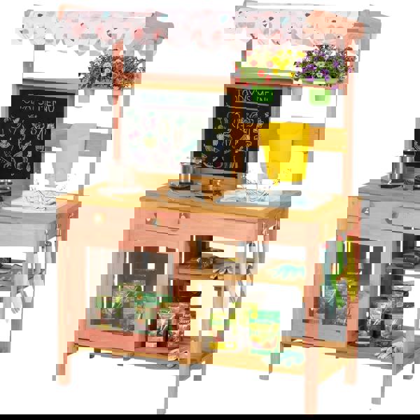 Bring your garden to life with this delightful AIYAPLAY mud kitchen, where children can pretend to cook, plant and doodle on the chalkboard. With a variety of accessories, it encourages hands-on role-play, creativity and practical skills. Solid fir wood construction, organised storage and a flamingo-print canopy let kids explore safely. Excellent for fun, educational play, it's a great gift that sparks imagination for ages 3–6.