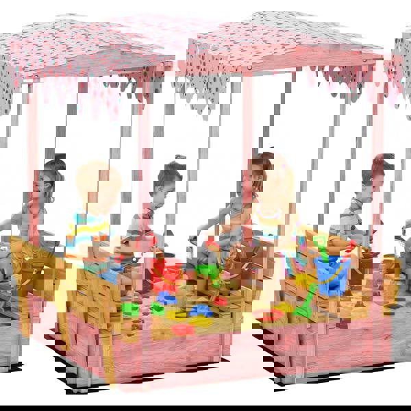 Sand pit play shouldn't be cut short by sun or end with messy cleanup. Picture your outdoor space's sand exposed to weather and critters creating a daily hassle. The AIYAPLAY sand pit with lid solves this with a flamingos-print canopy for shade. Two benches offer comfy seating and cleverly fold down into a protective cover. This spacious sandbox holds 290 kg of sand providing a vast area for imaginative, stress-free adventures