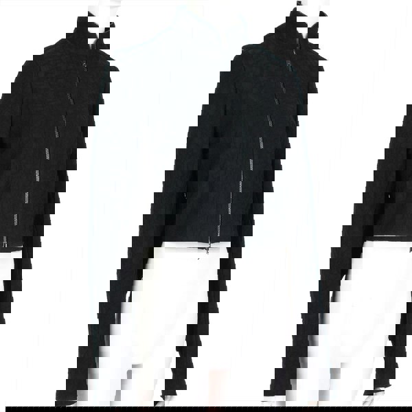 Gunmetal tone zip fastening with zipper detailing to neckline