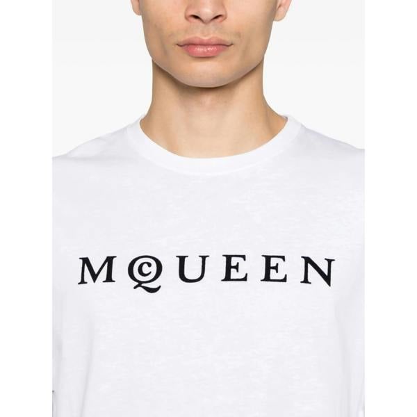 Elevate your wardrobe with the Alexander McQueen Flocked Logo T-Shirt, crafted in Italy with impeccable attention to detail. This white tee features a distinctive flocked logo, a classic crew neck, and comfortable short sleeves, combining understated luxury with everyday wearability. Ideal for refined casual looks, it offers both style and craftsmanship synonymous with the Alexander McQueen brand