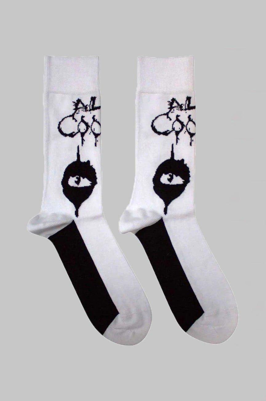 Official licensed Alice Cooper Unisex Ankle Socks featuring the 'Eyes' design motif. High quality Ankle Socks available in a white colourway. High quality unisex ankle socks featuring an all-over pattern and cotton rich. These woven socks are guaranteed to stand out in the crowd. Approx. UK Size 7 - 11 EU 40 - 45 US Size 7. 5 - 11. 5