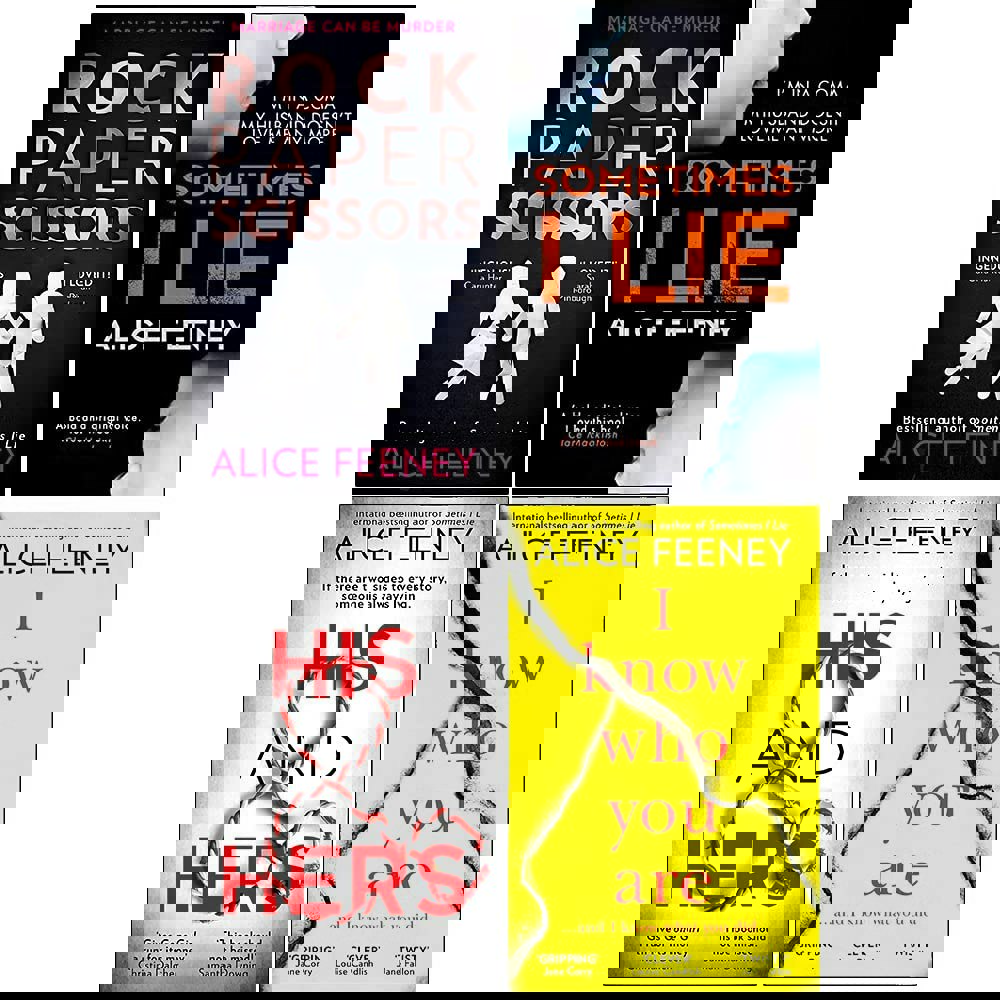This four-book collection brings together thrillers by Alice Feeney: Rock Paper Scissors, Sometimes I Lie, His And Hers and I Know Who You Are. Each story centres on shifting truths, hidden motives and the consequences of secrets that refuse to stay buried.
