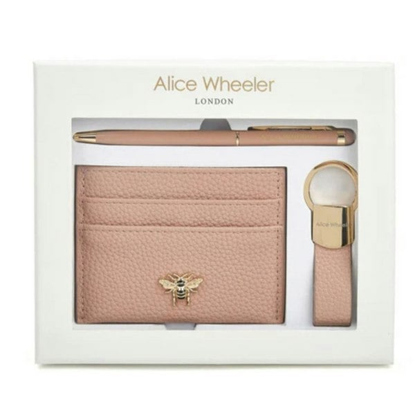 The set includes a Bow Card Holder in textured vegan leather with Alice Wheeler’s iconic gold bee fitting, an exclusive Loop Keyring available only in this set, and a sleek black-ink ballpoint Pen with stylus tip. Practical, stylish, and ready to gift, it’s the perfect choice for birthdays, thank-yous, or as a treat for yourself.