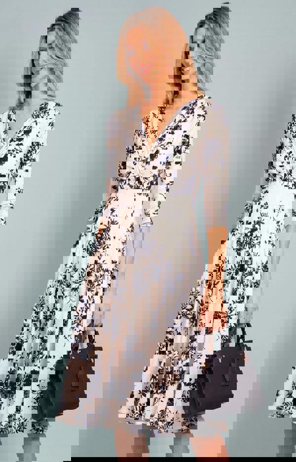 Sophisticated, feminine and effortlessly wearable, the Annie Dress in Oyster Blue by Alie Street London brings elegant floral styling to a flattering silhouette. Featuring a navy blue floral print set against a soft oyster background, this beautiful dress offers a refined look that is easy to style for both daytime events and special occasions.